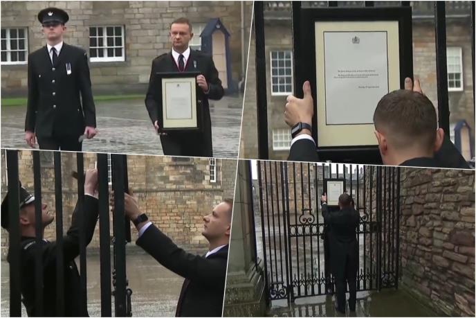 NJENO VISOČANSTVO JE PREMINULO: Ovako je okačeno saopštenje o smrti kraljice Elizabete na kapiju Bakingemske palate (FOTO)