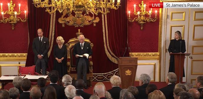 Himna "Bog čuva kralja" nakon proglašenja Čarlsa za britanskog kralja otpevana je na ceremoniji održanoj u palati Sent Džejms.