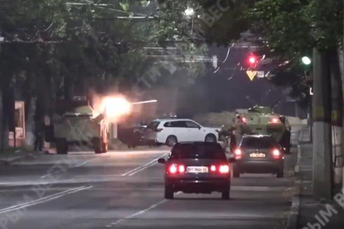Na objavljenom snimku se vide ruski specijalci da dva oklopna vozila BRDM-2 i BTR-82 od kojih dejstvuje BRDM-2 sa mitraljezom KPVT kalibra 14,5mm sa spregnuto ugrađenim mitraljezom PKT kalibra 7,62mm