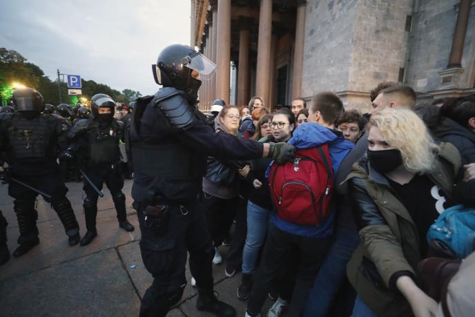 Novinari Frans presa u Moskvi videli su najmanje 50 privedenih na jednoj od glavnih ulica, a u Sankt Peterburgu policija je autobus napunila uhapšenim ljudima.
