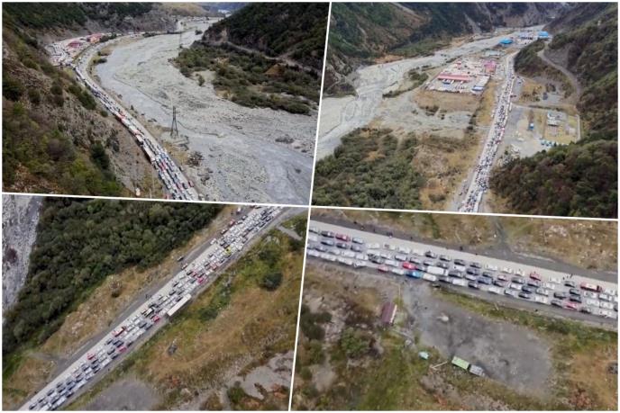 Video snimci pokazuju neke porodice i mnoge muškarce sami među onima koji čekaju da pređu u Verknii Lars. Stotine ljudi se približavaju prelazu peške, vukući kofere.