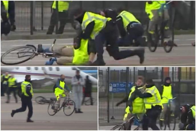 LUDILO U HOLANDIJI: 500 EKO AKTIVISTA UPALO NA AERODROM: Vozili bicikle po pisti i trčali. Policija ih jurila! 200 uhapšenih VIDEO