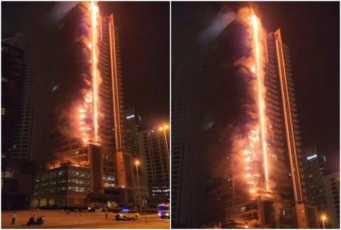 Soliter Emar od 35 spratova koji se nalazi kod čuvene Burdž Kalife, najveće zgrade na svetu zapalio se rano jutros u Dubaiu.