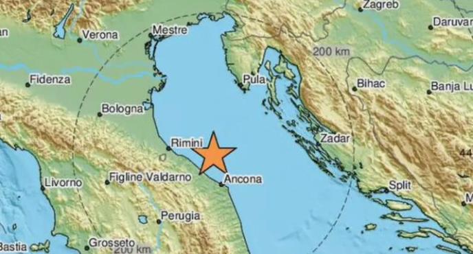 Zemljoters je bio jačine 4,3 stepena po Rihterovoj skali, dogodio se na dubini od 10 kilometara, a epicentar je bio 61 kilometar od italijanskog grada Riminija, preneo je portal Index.hr.