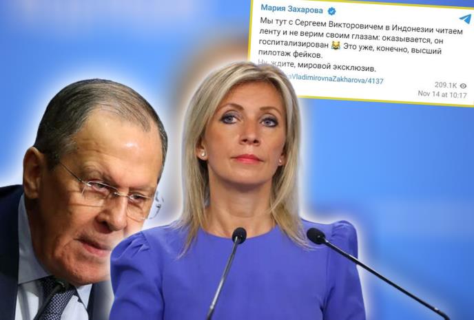 - Sedim sa Sergejem Viktorovičem (Lavrovom) u Indoneziji i čitamo vesti. Ne verujemo svojim očima: izgleda da je on u bolnici. Naravno, to je lažna vest do sada neviđena - napisala je portparolka Ministarstva inostranih poslova Rusije Marija Zaharova na Telegramu.