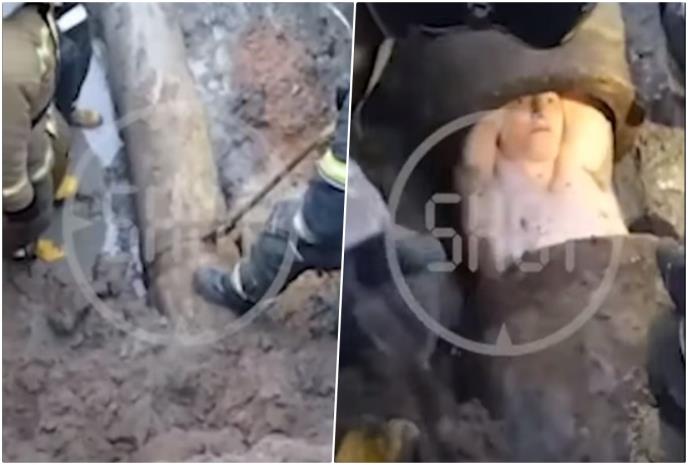 Snimak akcije spasavanja u Sankt Peterburgu na kom je muškarac izvučen iz veoma uske cevi postao je viralan na internetu.