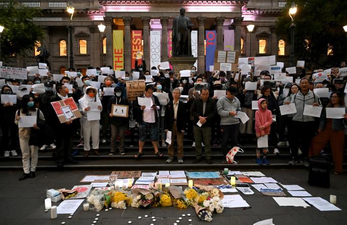 Kinezi preko mora takođe su organizovali proteste ispred kineskih ambasada, paleći sveće i držeći prazne listove papira.
