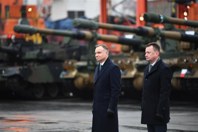 Duda i ministar odbrane Poljske Marijuš Blaščak su u Gdinji, na Baltičkom moru, dočekali 10 tenkova “Blek Panter K2” i 24 haubice “Tander K9”, u okviru sporazuma vrednog 5,8 milijardi dolara.