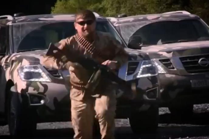 Lider Čečenije Ramzan Kadirov objavio je bizarni propagandni video na kojem se vidi kako puca iz puške u nebo i trči, dok ga prate vojna vozila.