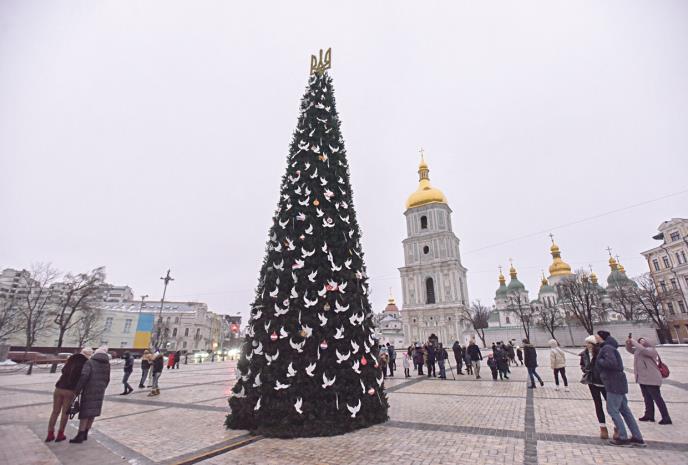 U centru Kijeva proteklog vikenda je postavljena 12 metara visoka jelka, koja je okićena i koja će svetleti zahvaljujući agregatu i štedljivim sijalicama.