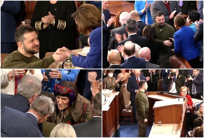 Prilikom ulaska u salu kongresmeni kako republikanci tako i demokrate su stajali, aplaudirali, a neki su se i sa njim rukovali uz ovacije. Organizator posete je bila predsednica Kongresa Nensi Pelosi, koja je od početka rata već bila u poseti Zelenskom, a ulaskom u salu dočekala ga je sa osmehom na licu i pomalo sa suzom u očima.