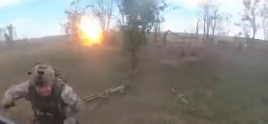 Granata je pala vrlo blizu ukrajinskih vojnika,a oni su onda u velikoj panici krenuli da napuštaju položaj.