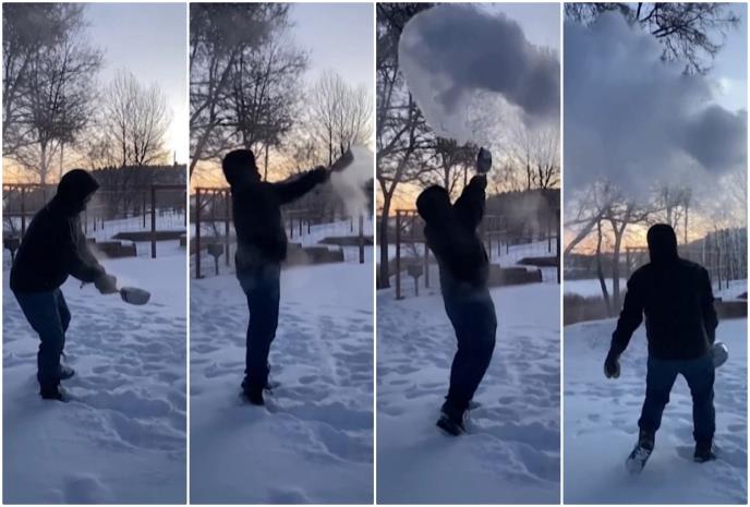 Da bi ilustrovao koliko je hladno jedan Amerikanac je upotrebio stari trik i objavio snuimak kako se vrela voda pretvara u sneg na ledenom vazduhu.