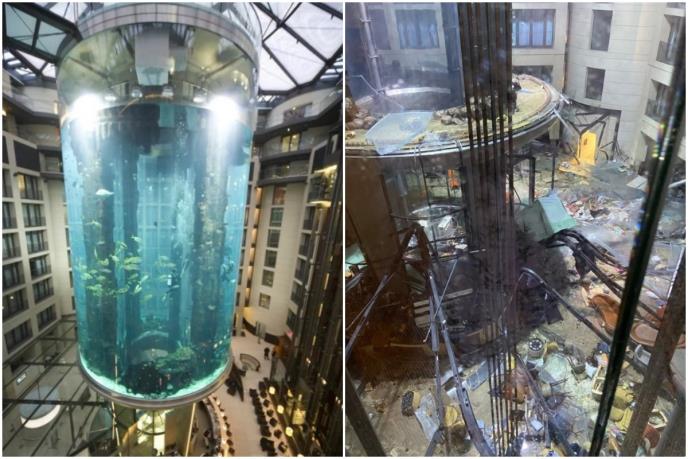 Akvarijum visok 25 metara, koji se nalazio u foajeu hotela Radison Blu u centru Berlina, eksplodirao je oko 5.50 ujutro 16. decembra, tako usmrtivši 1.500 tropskih riba koje su tamo bile smeštene.