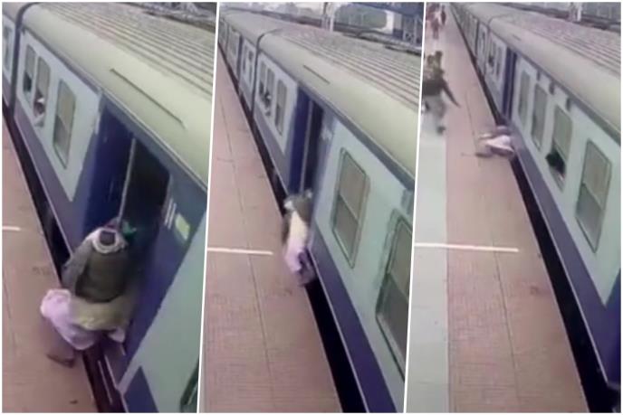 Penzionera je spasio brzopotezni železničar nakon što je stariji muškarac nepromišljeno požurio da se ukrca na voz u pokretu na stanici Purnia Junction u istočnoj indijskoj državi Bihar.