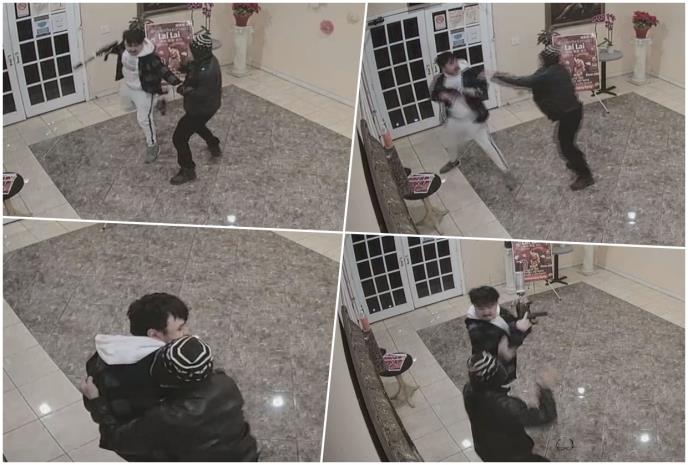 Na snimku se vidi kako se Cej bori sa muškarcem obučenim u tamnu odeću i sa kapom i uspeva da mu oduzme oružje koje je opisano kao "poluautomatski jurišni pištolj".