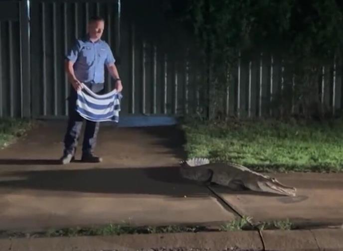 Ogromnog slatkovodnog krokodila primetio je na trotoaru Džej Bedford u 2 sata ujutru dok je bio u šetnji. Nakon toga usledila je višečasovna akcija hvatanja.