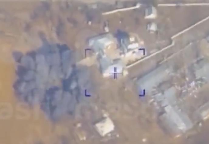 Na snimku se vidi kako su preciznim pogocima ukrajinska vozila uništena, dok je crkva ostala netaknuta.