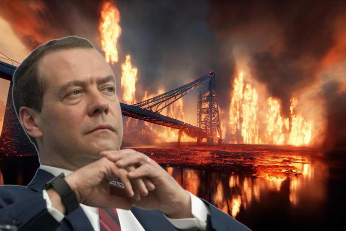 "U ovom slučaju neće biti pregovora, biće samo udari odmazde. Sva Ukrajina koja ostane pod vlašću Kijeva će izgoreti", rekao je Medvedev, odgovarajući na pitanje da li će udarima na Krim Rusija biti prinuđena da pregovara sa Ukrajinom.