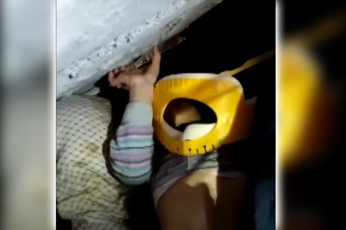 „Držim tvoje noge, tvoja stopala. Da, jesmo, polili smo ih vodom. Da li osećaš da su mokre? Žao mi je, valjda nismo primetili da smo ih pokvasili, rekao je spasilac, koji je zatim izvukao devojčicu ispod srušenog betona.