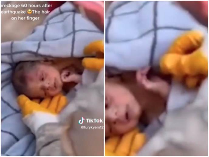 Na društvenim mrežama pojavio se snimak bebe stare 20 dana koju su posle 60 sati uspeli da izvuku iz ruševina. Kako se navodi, beba u ruci drži pramen kose za koji se pretpostavlja da je od detetove majke.