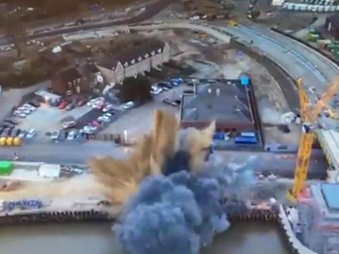 Eksplozija bombe izazvala je gust oblak dima. Oglasila se i policija Nortfolka čiji je dron zabeležio snimak eksplozije.