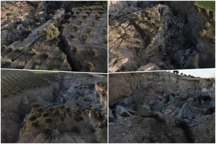 Na snimcima se vide džinovske pukotine u zemlji, urušena suva rečna korita koja si se pretvorili u kanjnone, dovaljene stene i pukotine duboke po nekoliko desetina metara. Tamo gde su stajali maslinjaci i zelena trava sada postoje samo velike udoline sa gomilom stenja i urušene zemlje.
