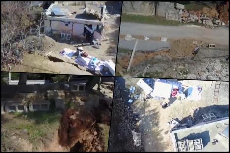 Snimci načinjeni iz vazduha dronom pokazali su jezive pukotine koje su se pojavile u zemlji nad srušenim selom. Pukotine su vidljive kao i ruševine svuda i na groblju, putevima, koji su preorani, kao da je neko zakačio ralo i krenuo u oranje, kućama. Ne postoji kuća koja je pošteđena.