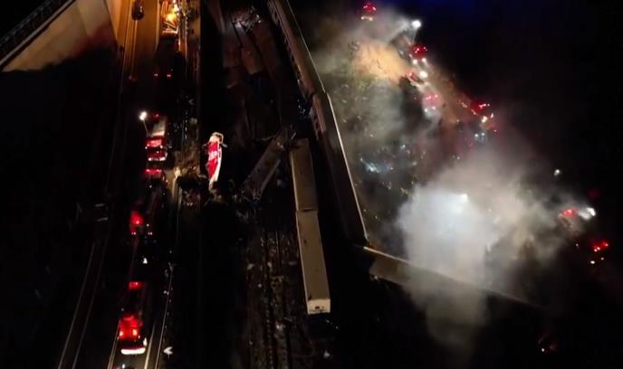 U ranim jutarnjim satima u sredu, snimci državne televizije ERT pokazuju kako spasioci sa farovima pretražuju olupinu i okolna polja u potrazi za preživelima.