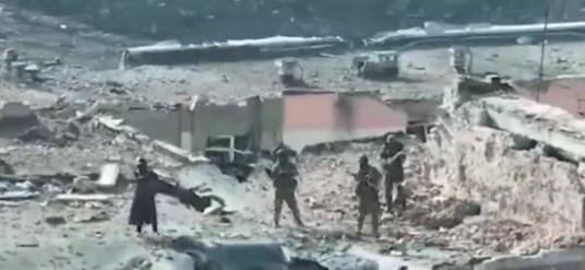Na snimku se vidi kako jedan od uniformiranih muškaraca na vrhu oronule višekatnice postavlja zastavu Vagnerove grupe. Drugi sviraju glazbene instrumente, što je referenca na neformalni nadimak Wagnerovih "glazbenika".