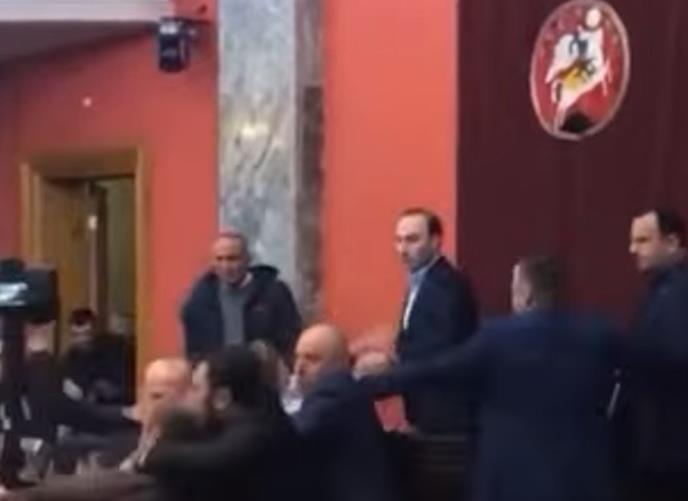 Snimak iz zgrade parlamenta u glavnom gradu Tbilisiju pokazao je kratku, ali nasilnu tuču između poslanika, nakon što je delovalo da je predsednik odbora za pravna pitanja udario lidera opozicione partije Ujedinjeni nacionalni pokret, koja se protivi zakonu, navodi Rojters.