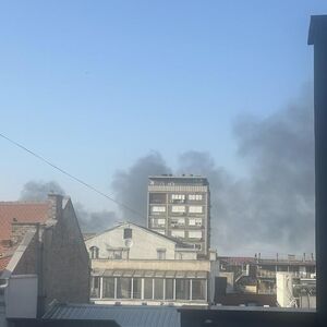 Nakon što je ploča pala s plafona, može se videti veliki oblak prašine.