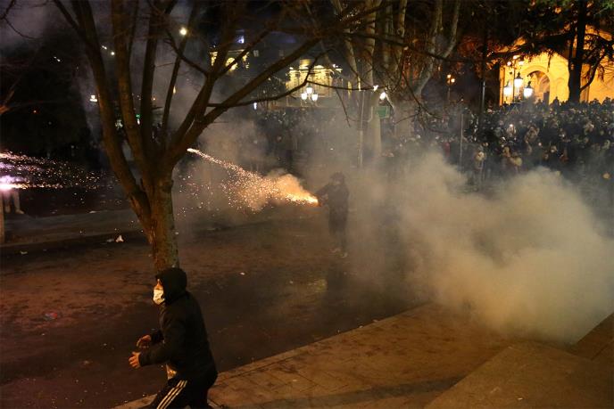 Prema navodima gruzijskog Ministarstva unutrašnjih poslova, demonstranti su bacali kamenje i Molotovljeve koktele na policiju i pokušali da izvedu "organizovan napad" na Parlament.