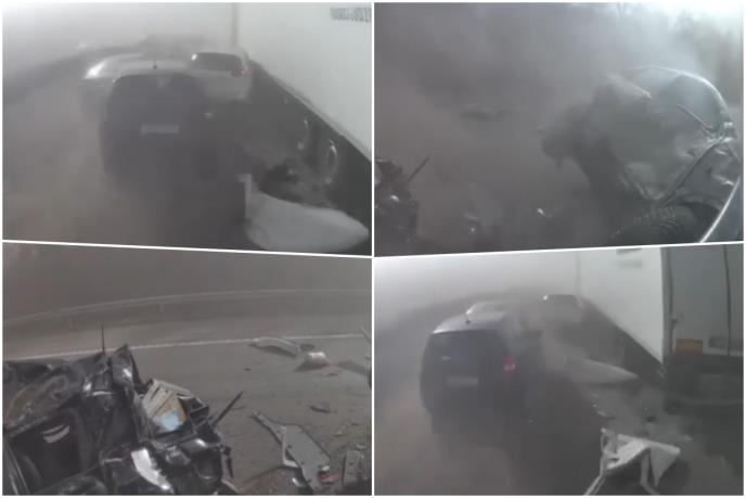 UZNEMIRUJUĆI SNIMAK TRENUTKA JEZIVOG LANČANOG SUDARA: Šta je snimila kamera na vozilu jednog od učesnika udesa! VIDEO