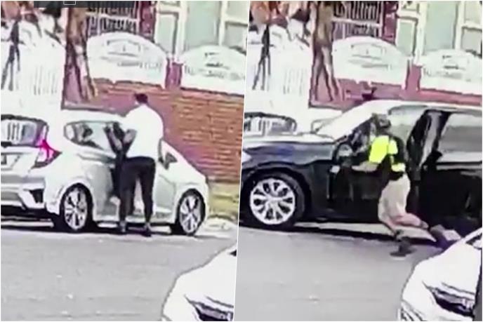 Kada je vozač izašao iz vozila, "flota" prikrivenih policijskih automobila se zaustavila oko njih, a policajci su iskočili i zahtevali od muškaraca da izađu.