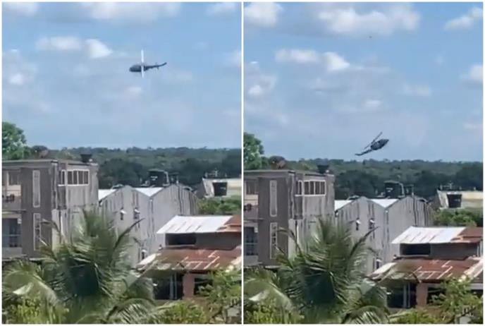 Snimak zastrašujućeg trenutka u gradu Quibdou ubrzo se pojavio na mrežama, a na njemu se vidi kako helikopter Kolumbijske nacionalne vojske gubi kontrolu u letu i pada na tlo, te se potom pojavljuje oblak dima.
