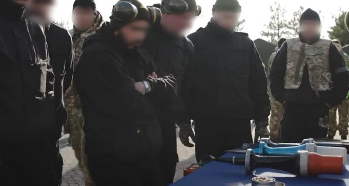Granate su prikazane raširene na stolu sa drugim vrstama municije, dok ukrajinske tenkovske posade slušaju predavanje američkih i britanskih vojnika.