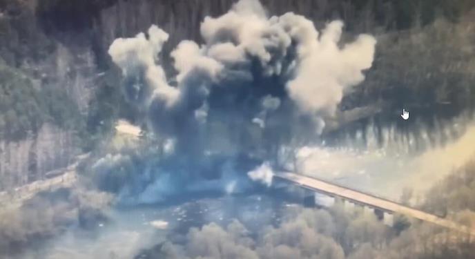 Snimak uništavanja mosta u Černigovskoj oblasti može se videti i na Telegramu: