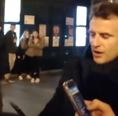 Na društvenim mrežama se pojavio snimak francuskog predsednika Emanuela Makrona kako peva tradicionalnu pesmu na ulici nakon jučerašnjeg televizijskog obraćanja, u kom je pokušao da smiri napetosti koje su u Francuskoj izbile zbog nepopularne penzione reforme.