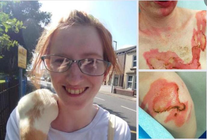 Ona je uspela da pobegne sa lica mesta i hitno je prebačena u bolnicu Kamberlend u Kambriji. Lečena je od teških opekotina po glavi, vratu i ramenima