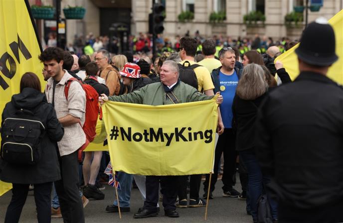 Pristalice republike su se okupili na Trafalgar skveru na protestu pod nazivom "Nije moj kralj". Grupa za kampanju Republika se nada da će se tokom pre podneva okupiti između 1.500 i 2.000 ljudi, ali je do 7 sati ujutru bilo oko 30 prisutnih, piše Dejli Mejl.