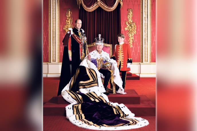 Načinjena je u Bakingemskoj palati i na njoj kralj Čarls nosi krunu i druge simbole vlasti.
