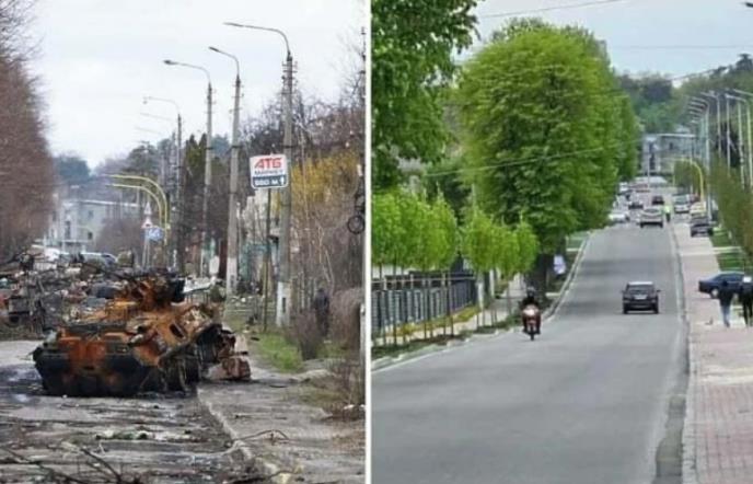 BUČA PRE GODINU DANA I SAD: Reč je o istoj ulici, od spaljene zemlje Ukrajinci napravili čudo (FOTO)