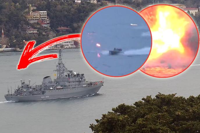 Rusko ministarstvo odbrane objavilo je navodni snimak napada na obaveštajno-izvađački brod Crnomorske flote"Ivan Kurs" 140 kilometara od Bosfora.