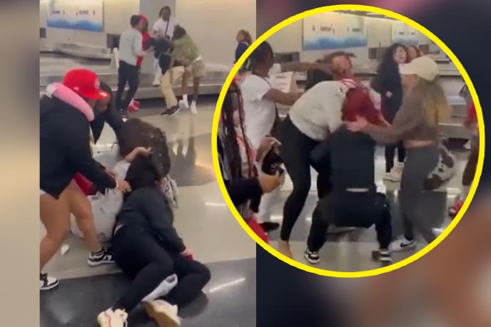 Grupa muškaraca je u jednom momentu skočila na traku za prtljag gde su se udarali pesnicama i nogama dok su se ostali mlatili na zemlju. Može se videti kako žena koristi slušalice kao oružje pre nego što je muškarac baci na pod i počne da je udara.