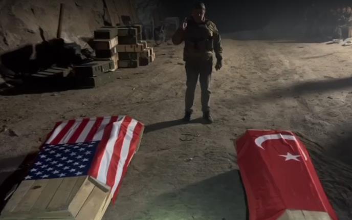 Na snimku se vide pripadnici Vagnera kako zakivaju dva kovčega, a zatim jedan prekrivaju zastavom Sjedinjenih Američkih Država, a drugi zastavom Turske.