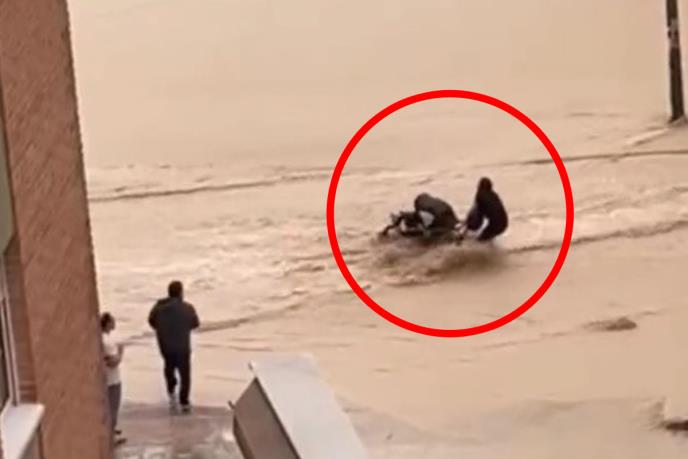 Na neverovatnom snimku iz gradića Molina de Segura vidi se dete koga je bujica u jednom momentu izbacila iz kolica.