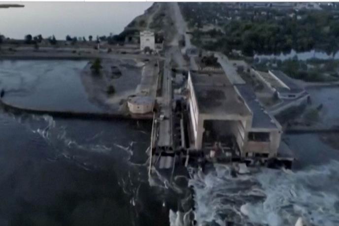 Predsednik Ukrajine Volodimir Zelenski izjavio je danas da je pucanje brane Kahovka na jugu Ukrajine „ekološka bomba masovnog uništenja”.