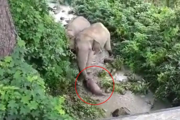 Slonica je međutim nosila slonče oko dva kilometra i pokušala da ga oživi tako što ga je stavila u rečni tok.