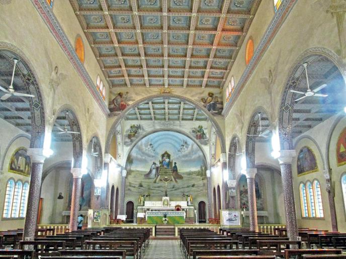 Crkva je najlepša zgrada u celom gradu, sa štraftama od žutog i crvenog mermera, sa rozetom, nizom malih arkada i šest ukrasnih kupola na ulazu. Unutrašnjost je, takođe, evropska, jedino su bubnjevi afrički, od životinjskih koža i dobro rabljeni: službama meštani dodaju tradicionalne zvuke svojih predaka.